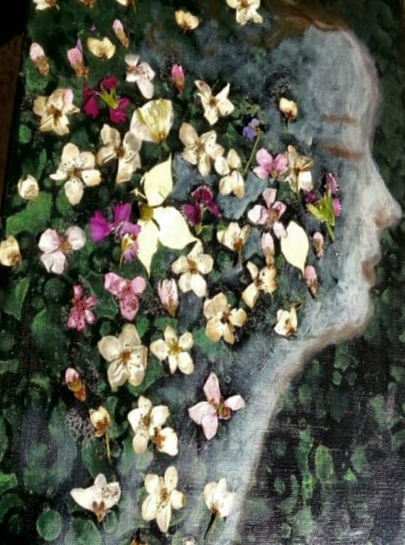SOLD Acrylic, Pressed Flowers. 12″ x 16″