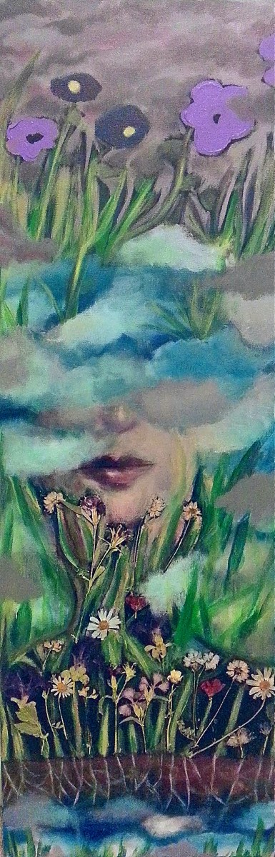 Acrylic, Pressed Flowers. 12″ x 36″
